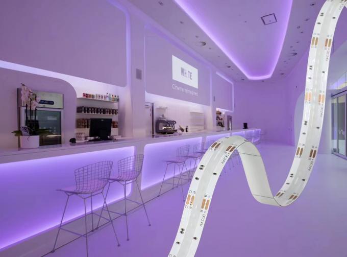 This is a linear lighting project in a Belgian cinema. The cinema uses RGB COB Flex, which is applied in reception areas, lounge areas, bar counters, etc. The lighting effect is not only limited to white light and warm white light, but also to purple and pink. The changes of special colors such as color, light blue, etc., coupled with the soft light without spots, greatly improve the grade and visual recognition effect of the theater.